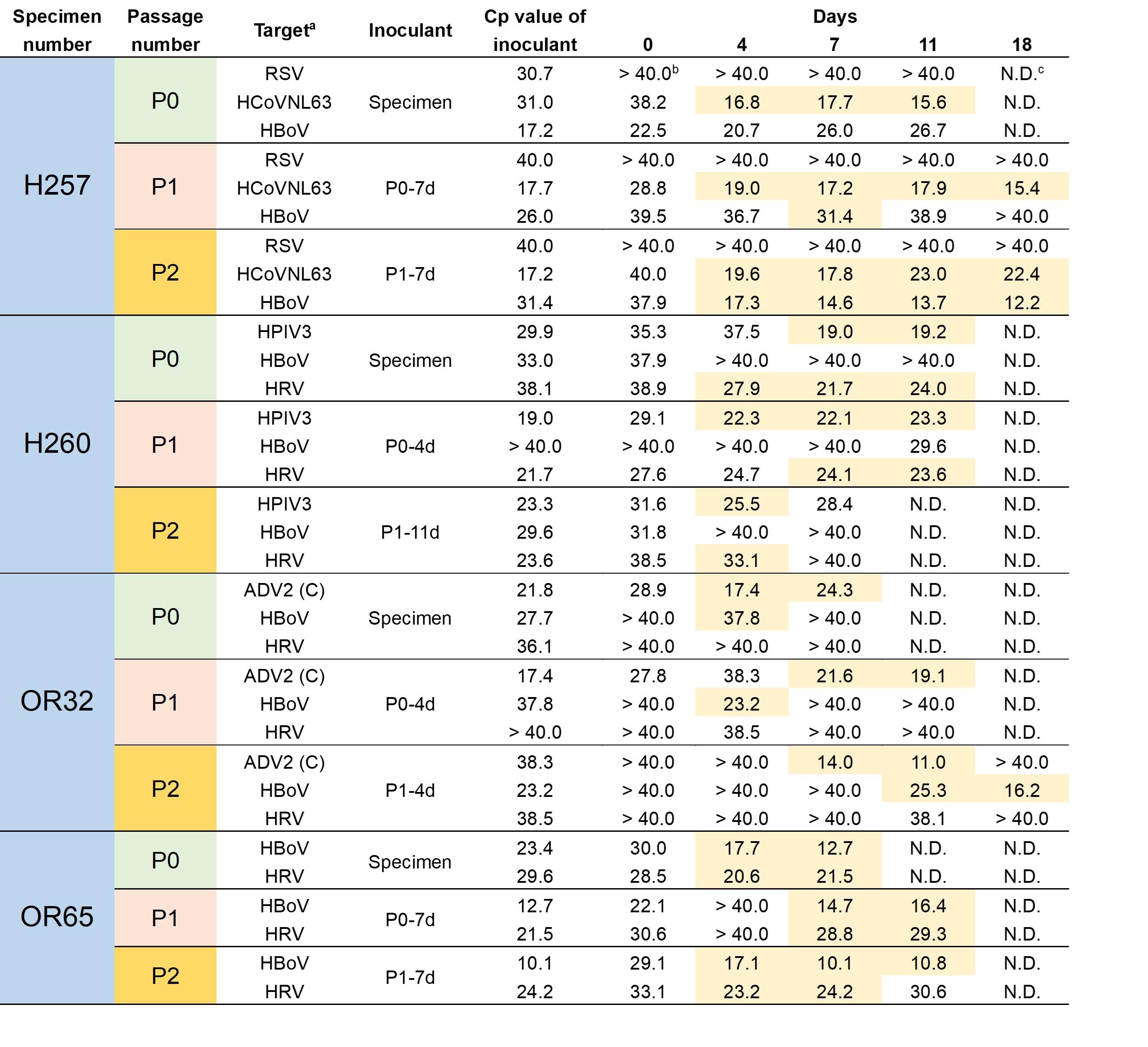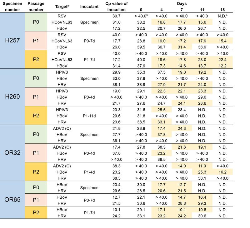 これら複数同時陽性事例や、低コピー陽性例における感染性ウイルスの存在を調べるためには、ウイルス分離を行うことが一番であるが、問題は急性呼吸器ウイルスの分離方法であり、通常の株化培養細胞では分離できないウイルスも多く存在する。