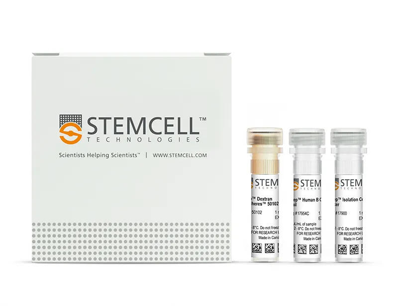 EasySep™ Human B Cell Isolation Kit(製品コード:ST-17954)は、ヒトの新鮮もしくは凍結した末梢血単核細胞(PBMC)やウォッシュした白血球アフェレーシスサンプルから、B細胞を免疫磁気ネガティブセレクションで単離する製品です。