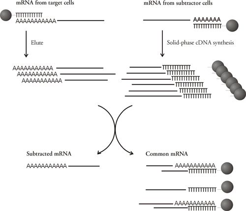 An alternative approach is to create immobilised cDNA libraries from both target and subtractor mRNA(2、4).
