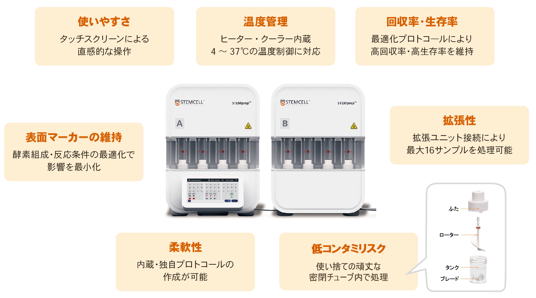 | STEMprep™ Tissue Dissociator 8-Sample System | ST-100-2114 | 本体+拡張ユニット1台 | 8 |