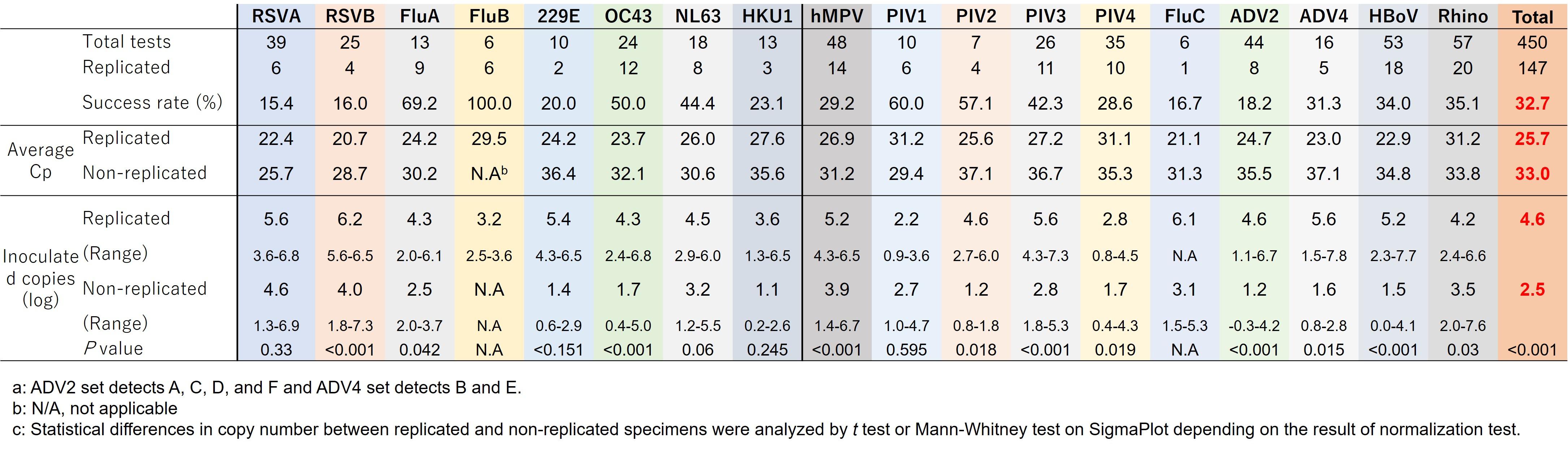 これら複数同時陽性事例や、低コピー陽性例における感染性ウイルスの存在を調べるためには、ウイルス分離を行うことが一番であるが、問題は急性呼吸器ウイルスの分離方法であり、通常の株化培養細胞では分離できないウイルスも多く存在する。